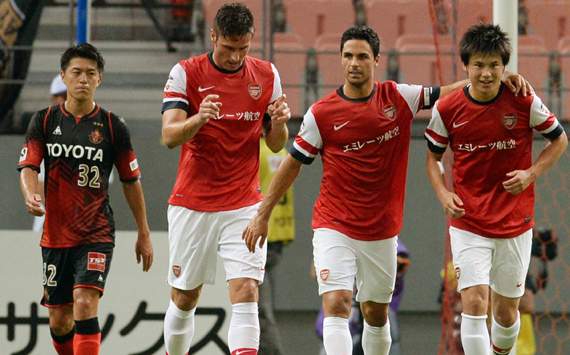 Olivier Giroud continued his fine early season form with his sixth goal of the tour so far, while local favourite Ryo Miyaichi delighted the huge crowd with a penalty and Theo Walcott added a third before the hosts pulled one back.